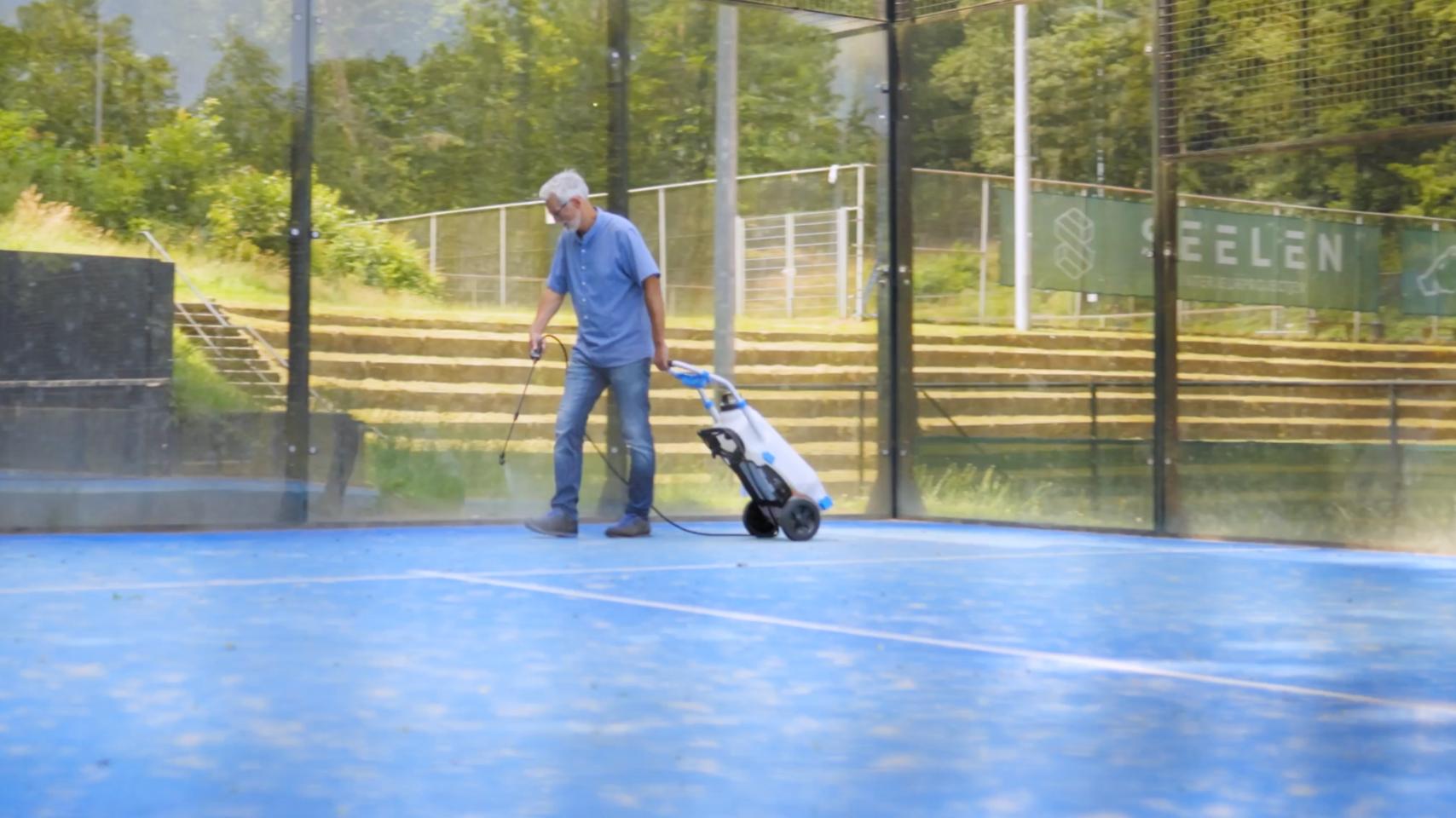 “Een keer in de twee weken behandel ik de banen met MO5 Sport. Per baan duurt het een kwartier. Ik zie duidelijk een stijgende lijn. We hebben hier geen problemen meer met algen, ook niet op momenten dat de algendruk in Nederland hoog is. Ik raad andere verenigingen écht aan om preventief te werken. Als de banen eenmaal groen worden door de algen, ben je te laat.”